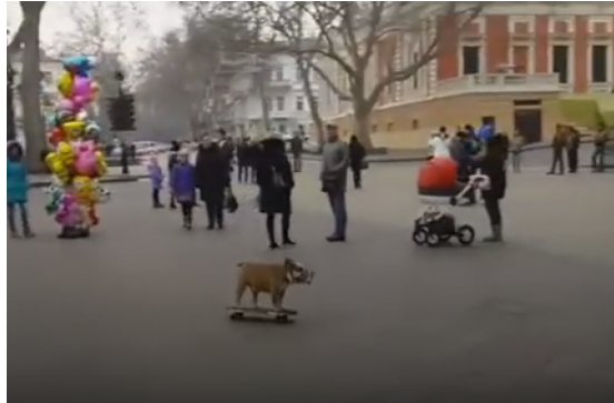 Одесский пес-скейтбордист, катающийся на Думской площади в Одессе, продемонстрировал людям, как нужно развлекаться.