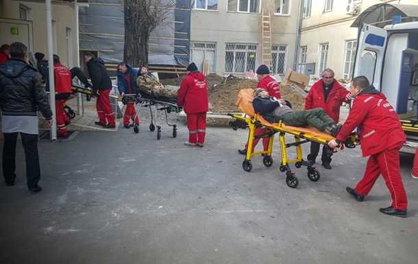 Машины скорой помощи для перевозки раненых в Военно-медицинский клинический центр Южного региона.