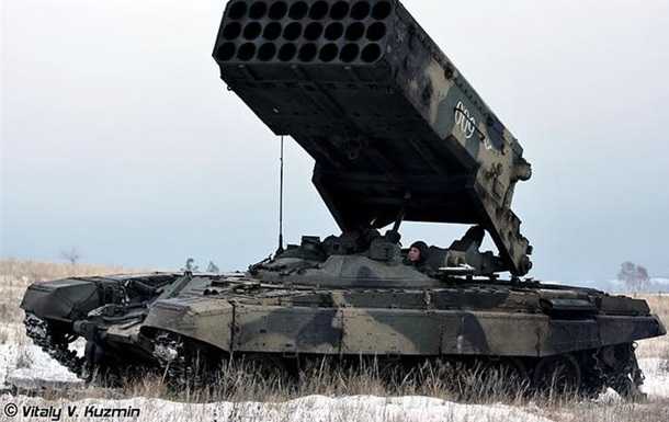 Украинская разведка сообщает об обнаружении у сепаратистов на Донбассе запрещенной минскими договоренностями тяжелой огнеметной системы ТОС-1 "Буратино". Об этом сообщает Главное управление разведки Минобороны.