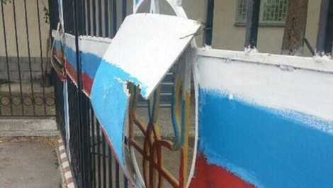 В комментариях к фото пользователь отметил, что «украинские символы оккупанты прикрыли картонкой раскрашенной в цвета аквафреша».