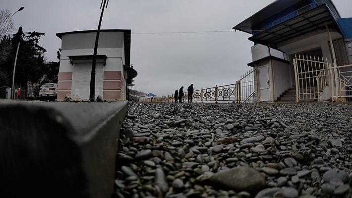 Шторм, разыгравшийся в Алуште два дня назад, засыпал набережную города слоем гальки, который в некоторых местах достигал пяти сантиметров.
