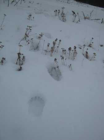 «Я только что вернулся из под Чивчина (труднодоступная гора на границе с Румынией, -авт.), на участке в несколько десятков квадратных километров я пересекся с как минимум тремя разными мишками, двое из которых мои «знакомые», т. е. я знаю об их ареале обитания и часто встречаю в этих местах их следует, но третий ...для меня, например, было новостью, весьма шокирующее (следует 40см/25см), и этот гигант ходил змейкой весь пол... Мне просто повезло что я не привлек его внимание потому что пока зверь для него - легкая добыча (снег неглубокий)», - пишет житель Ивано-Франковской области Александр.