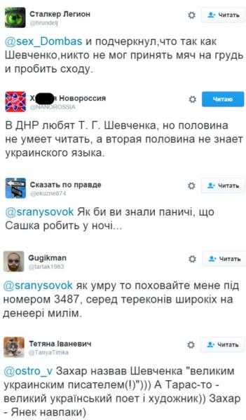 Пользователи соцсетей высмеяли литературные познания Захарченко и заявили, что если бы Шевченко вдруг оказался сейчас в "ДНР", то попал бы точно "на подвал".