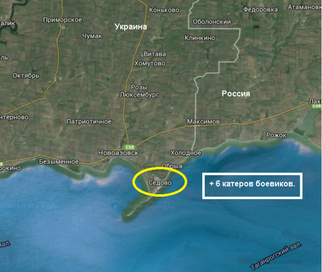 Так, на территории н.п. Седово Новоазовского района сетью группы ИС зафиксировано 6 катеров, «реквизированных» у местного населения для «флота ДНР». Катера дислоцируются в районе бывшего консервного завода.