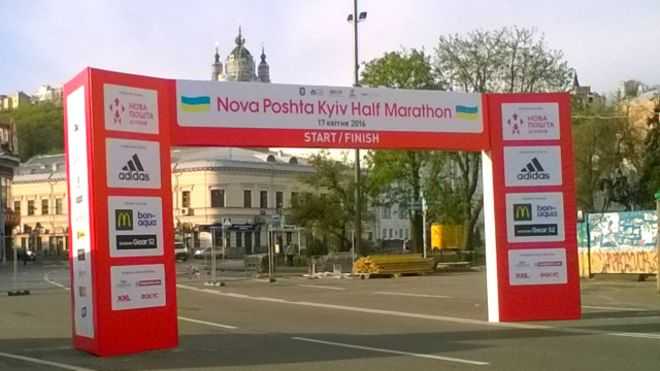 Утром субботы, 16 апреля, на столичной Контрактовой площади уже установили арку для старта-финиша полумарафона. В воскресенье в столице пройдет шестой Киевский полумарафон. Из-за этого в выходные будет перекрыто несколько улиц в центре города.