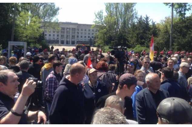 Новости Одессы: граждане, собравшиеся почтить память жертв трагедии 2 мая 2014 года в Доме профсоюзов недовольны тем, что их не пропускают за огражденный лентой периметр, ближе к Дому профсоюзов.