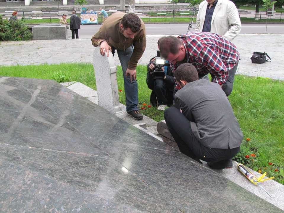 В Полтаве активисты-"свободовцы" восстановили разрушенный вандалами памятник Небесной сотне.