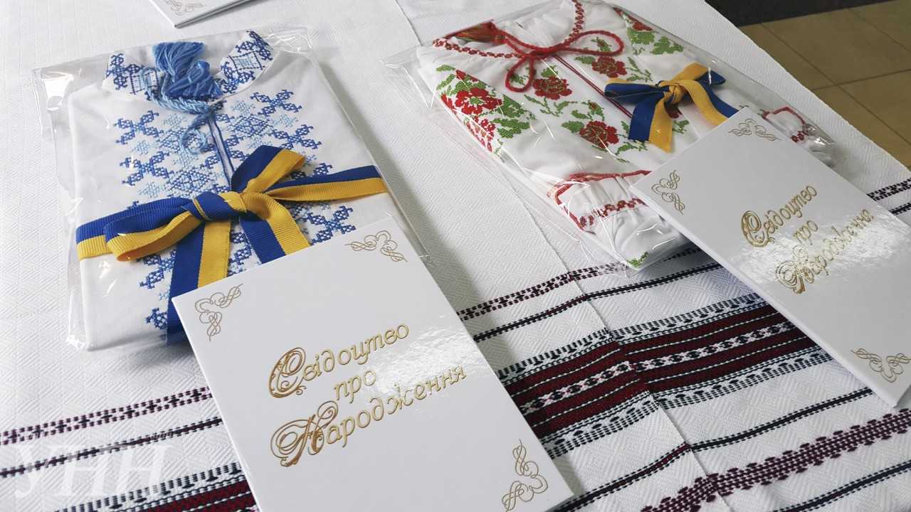 В столичном родильном доме №5 вручили свидетельства о рождении и подарил вышитые распашонки младенцам, которые родились во Всемирный день вышиванки.
