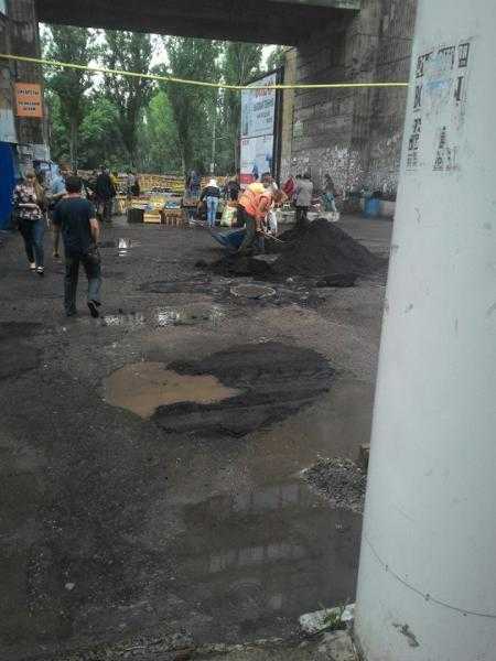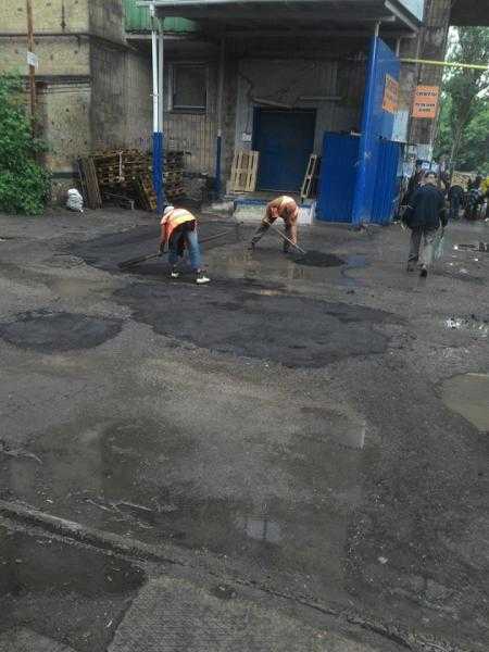 В центре оккупированной Макеевки асфальт уложили прямо в лужи. Фото этого процесса опубликовал в Фейсбуке журналист Денис Казанский.