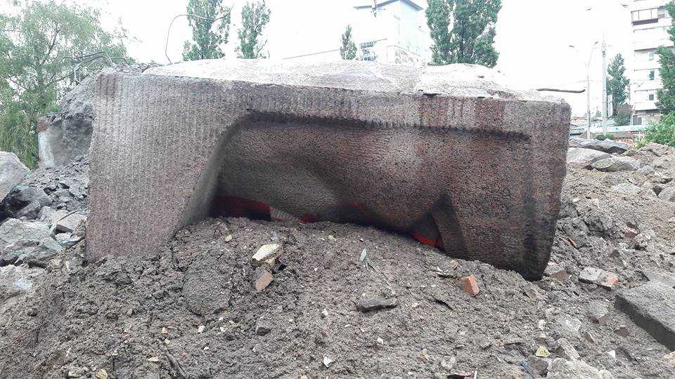 Экскаватор за считанные минуты разрушил монумент, оставив на земле глыбы бетона.