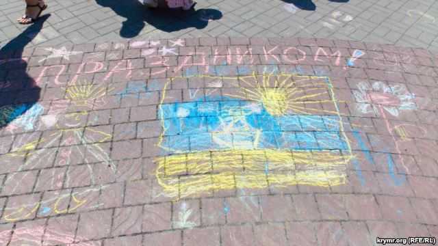 В оккупированном Севастополе во время праздничных мероприятий ко Дню защиты детей маленькие жители города нарисовали на асфальте украинский флаг.
