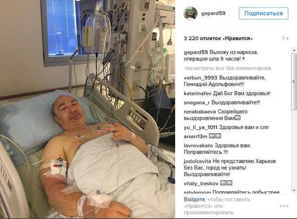 Мэр Харькова Геннадий Кернес перенес длительную операцию. Об этом он сообщил на своей странице в Instagram.