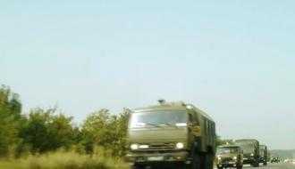 Очевидцы сняли перемещение техники на видео. В составе колонны шли боевые бронетранспортеры, КамАЗы, УАЗы.