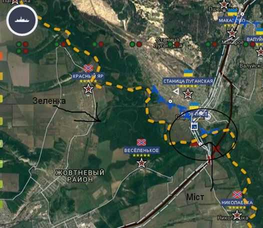 Кроме того, в июне 2016 года террористы перешли реку и установили свой новый блокпост на уцелевшей части автомобильного моста над левым берегом Северного Донца. По-сути на нашей территории. Поэтому «необходимость ремонта моста черед Северный Донец», о котором говорят минские переговорщики есть не более чем красивой фразой.