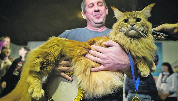 Сегодня, 11 октября, в сообществе «Типичный Киев» представили снимок крупнейшего в Украине кота. Он весит 11 кг и 600 г. Его имя Кекс. Так, животное относится к породе мейн-кун, которая славится большими размерами животного.