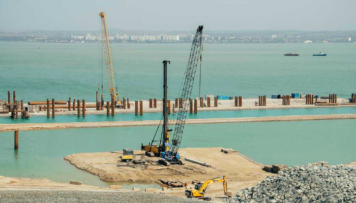 В оккупированном РФ Крыму на строительстве моста через Керченский пролив сгорел автомобильный кран.