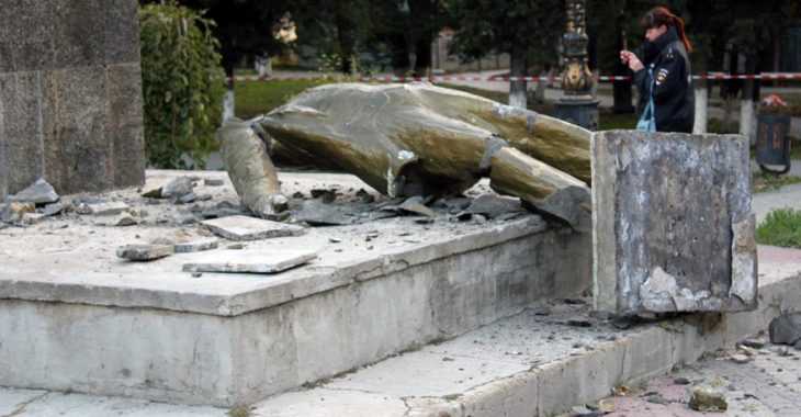 В оккупированном РФ Судаке неизвестные разрушили памятник Ленину в городском саду.