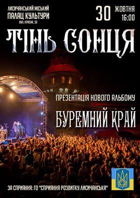 В городе Лисичанске Луганской области выступит известная украинская рок-группа "Тінь Сонця".