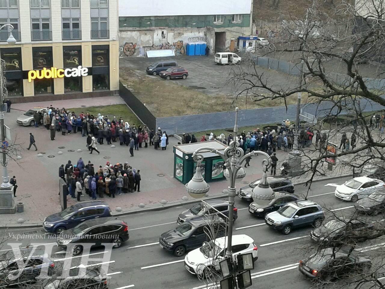 Група активістів знову зібралась у центрі Києва. Їх налічується декілька сотень, але людей збирається все більше.
