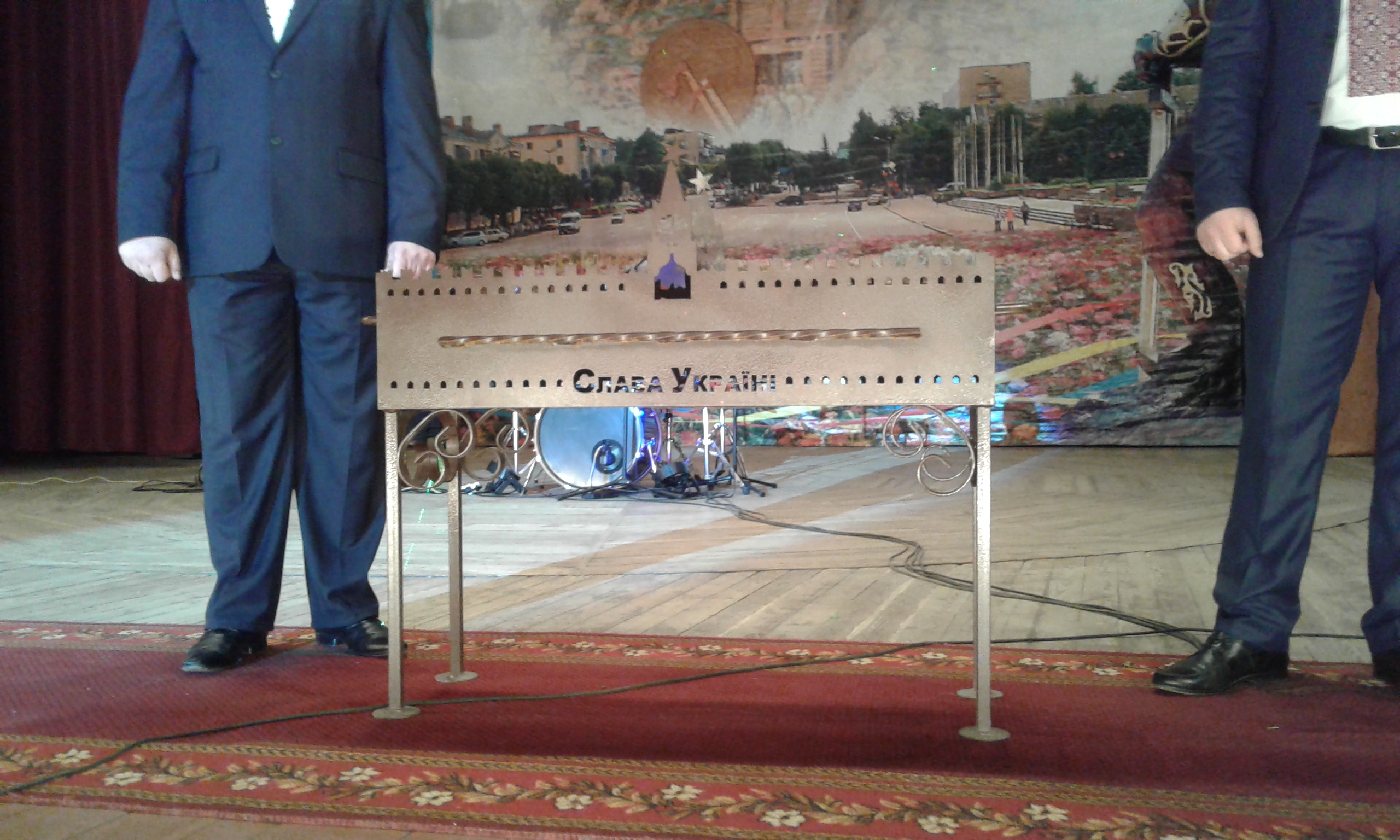 Но фантазия и мастерство воплощаются не только в граните и фарфоре, но и в металле. Так в Коростене изготавливают вот такие мангалы - «горящий кремль». Один из них и отправили в подарок в столицу РФ.