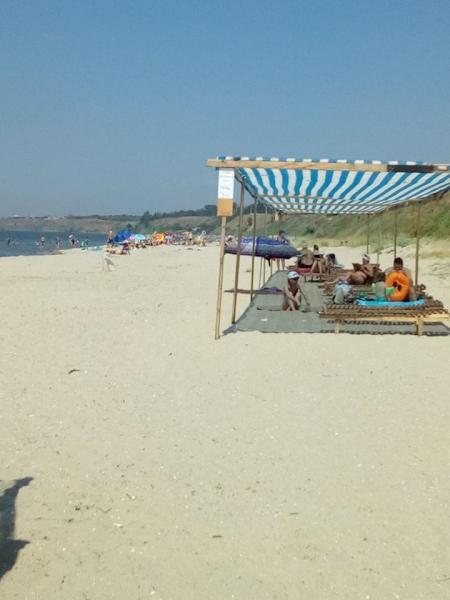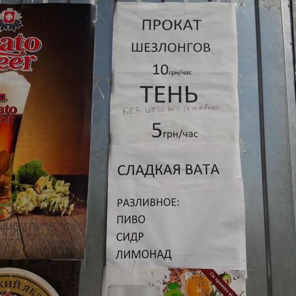 Там отдыхающим предлагают взять на прокат шезлонг за 10 гривен в час или просто место в тени – за 5 гривен с человека.