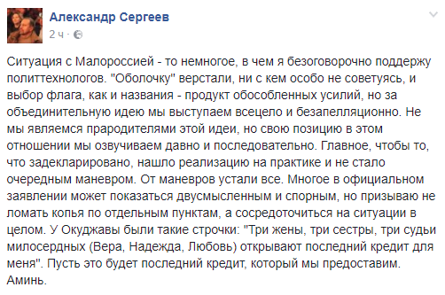 В «документе» говорится, что «Малороссия» является многонациональной страной, в которой два государственных языка – русский и малороссийский. Она имеет федеративное устройство, а регионам предоставляется широкая автономия.
