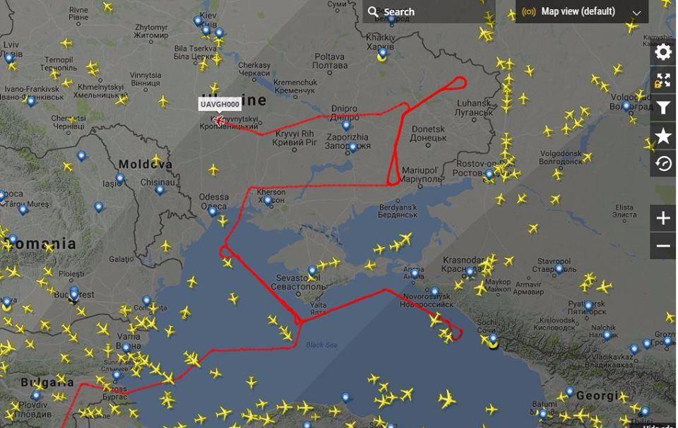 Этот "разведчик" осуществляет полет уже не первый раз, и то, что он это делает - не секрет. Самолет использует гражданский транспондер и каждый желающий может во время его полета зайти на сайт flightradar24.com набрать в поиске позывной "UAVGH000" и в режиме онлайн следить за его перемещениями.