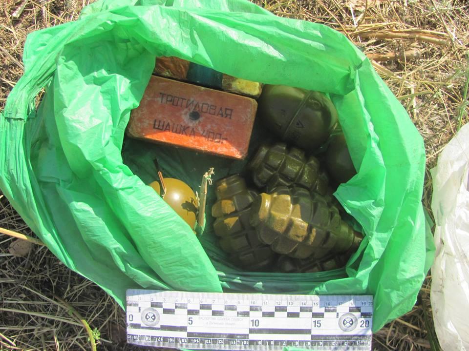 В ходе осмотра места происшествия полицейские обнаружили и изъяли 150 патронов калибра 5,45 мм, 1400 г тротила, 4 выстрела ВОГ-25, пять гранат «Ф-1» и пять гранат «РГД-5».