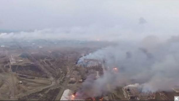 Подразделениями ГСЧС осуществляется мониторинг противопожарного состояния населенных пунктов в зоне чрезвычайной ситуации, ликвидировано возгорание 7 домов в результате попадания боеприпасов.