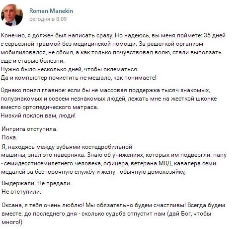 «Меня задерживали за пост в ФБ. Из двух фраз. Первая из которых - о Министре А. Диком. И единственное существенное, что интересовало дознавателей: откуда я получил сведения о возможном аресте Дикого. Все!», - заявил пропагандист Манекин днр.
