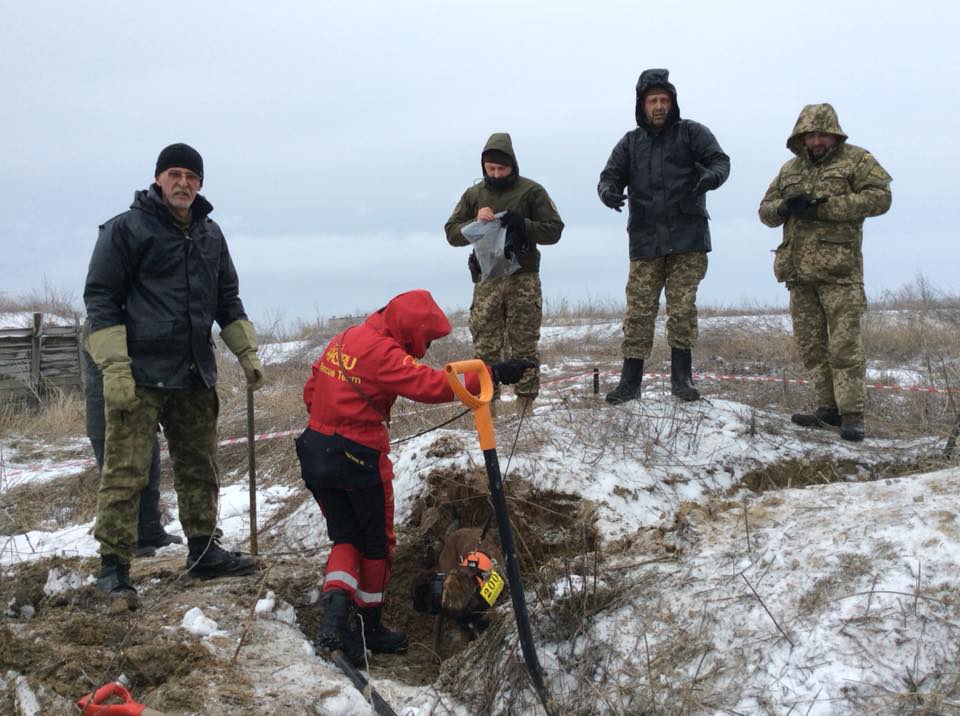 Летом 2014 во время тяжелых боев за Лисичанск здесь проходила дорога смерти, и наши военные понесли первые тяжелые потери.... Но и наши воины тогда дали чертей банде дремова и так называемому батальону «призрак». Местные жители из освобожденных поселков тогда прикапывали и хоронили тела. Сейчас здесь ведутся поисковые работы. В сверхтяжелых погодных условиях, даже при минусовой работе военные, эксперты, поисковики вместе с группой кинологов и специально обученной собакой ищут тела погибших... Координирует эту работу отдел поисковой работы управления гражданско-военного сотрудничества ВСУ, их основная задача - поиск пропавших без вести, эксгумация останков и транспортировка погибших к местам проведения экспертизы и захоронения. Сначала идет серьезная опросная работа, наши пытаются найти любую информацию о возможных местах захоронения погибших, расспрашивают местных жителей. Когда есть какой-то сигнал или информация - территория проверяется на взрывоопасные предметы и начинается самое сложное, поиск останков. Собака по имени Спарки (единственная в своей трудной и важной работе) роет землю, и вот она замерла, легла - это сигнал людям, что дальше могут быть останки, дальше работают эксперты.
