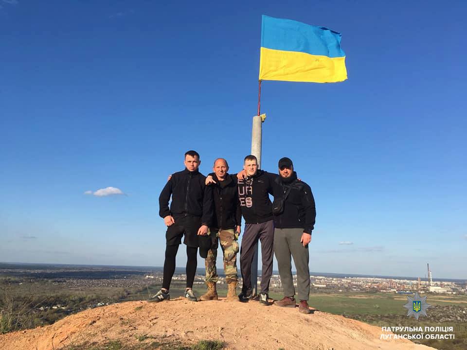 После зимних холодов, ветра и снега, полотнище флага имело довольно печальный вид. Инспекторы решили, что негоже государственному символу находиться в таком состоянии. В свой выходной патрульные, совместно с лисичанскими патриотами, поднялись на террикон и заменили флаг на новый.