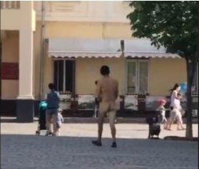 Жители Мукачево наблюдали сегодня, 1 мая, необычную картину, - в центре города гулял голый мужчина, сообщает Час Пик.