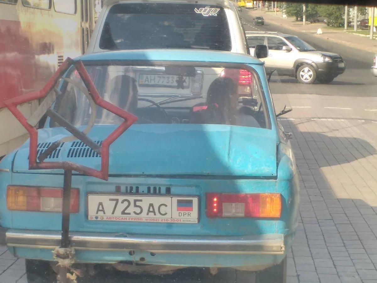 "У них 3 в одном - убитый в хлам украинский "Запорожец" едет с приваренной к ж*пе звездой с серпом и молотом+с номерами несуществующей страны! Люди живут в своей выдуманной реальности, причем ВЕРЯТ В "СВЕТЛОЕ будущее" при этом!" - добавила пользовательница.