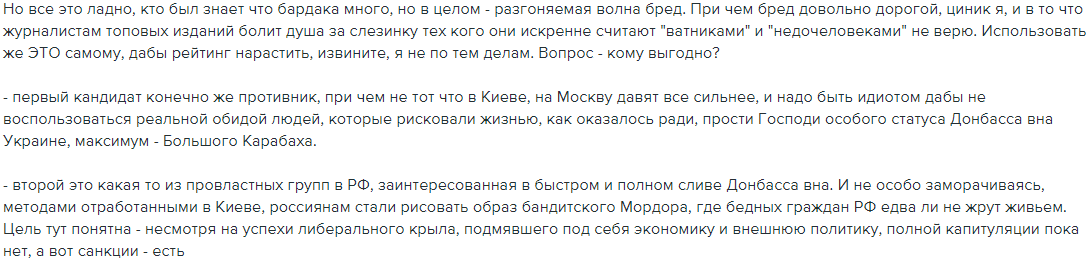 По мнению блогера, разгоняемая информационная кампания свидетельствует о том, что некоторые провластные группы в РФ заинтересованы в "сливе" ОРДЛО Украине.