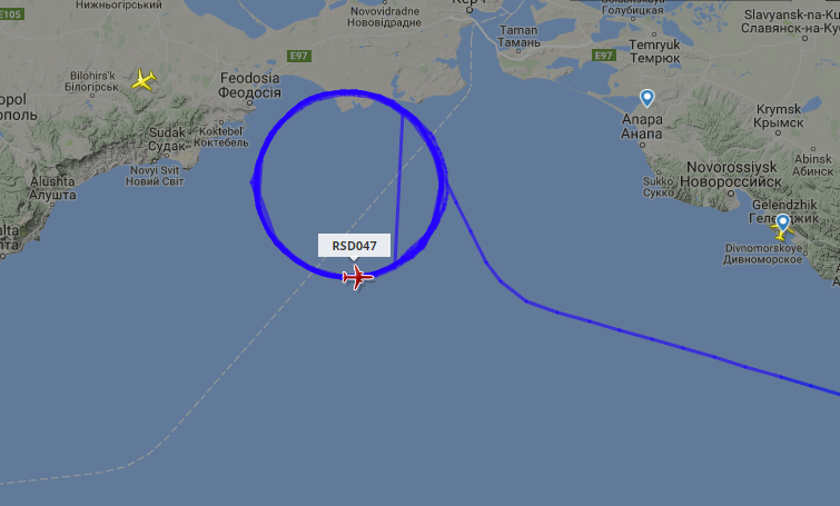 На протяжении нескольких часов у берегов оккупированного Крыма кружит самолет спецсвязи из авиаотряда президента РФ.