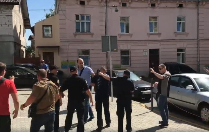 Видео "помидорной атаки" опубликовал в Фейсбуке депутат Львовского городского совета Игорь Зинкевич, передает Час Пик.