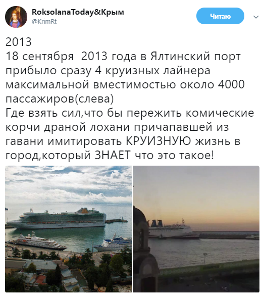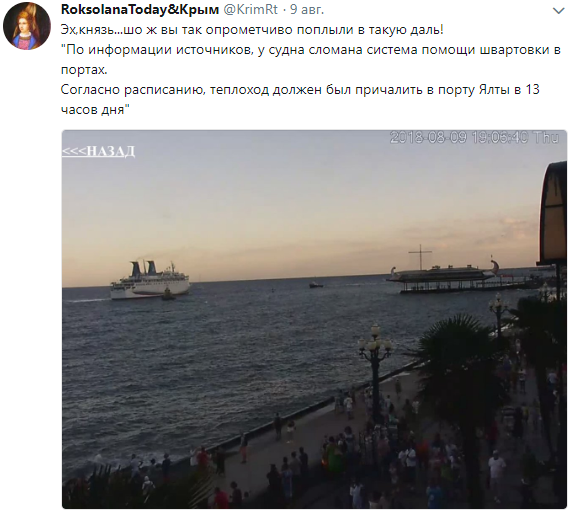 За похождениями "Князя Владимира" следили пользователи соцсетей. Блогеры отметили, что до оккупации Ялта принимала круизные лайнеры с тысячами туристов, а теперь крымчане вынуждены наблюдать лишь "комические корчи драной лохани".