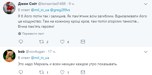 "Я бы его потом так и оставил. Как памятник всем погибшим. Восстанавливать его это кощунство. Там на каждом шагу кровь, там пепел сгоревших танкистов... Вечная память героям!" - написал в комментарии пользователь Джон Сміт.