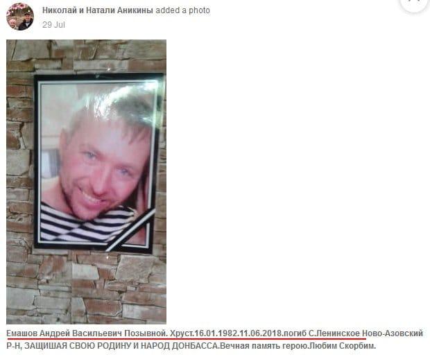 Террорист "ДНР" из Макеевки Емашов Андрей Васильевич 1982 года рождения с позывным "Хруст" был ликвидирован еще 11 июня 2018 г. в районе с. Ленинское Новоазовского района.