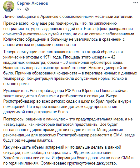 Детей из с.Перекоп,что у кислотонакопителя,НЕ вывезли,отправили домой,дышать кислотой.В селе совсем капец,кстати pic.twitter.com/TiXQxayrtA— RoksolanaToday&Крым (@KrimRt) 4 сентября 2018 г.
