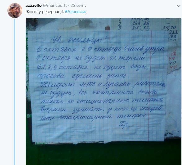 Жителям оккупированной территории также рекомендуют запастись водой, потому что из-за дефицита напряжения будет невозможно запустить насосы. Из-за отсутствия электроэнергии отключатся и вышки мобильной связи, встанет электротранспорт. Так, известно, что в Луганске троллейбусы временно заменят автобусами на время отсутствия света.
