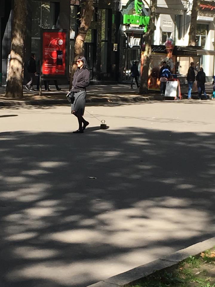 "Вообще на Соборной разные чудеса бывают. К примеру девушка выгуливает старый утюг", - написала она и опубликовала фото.