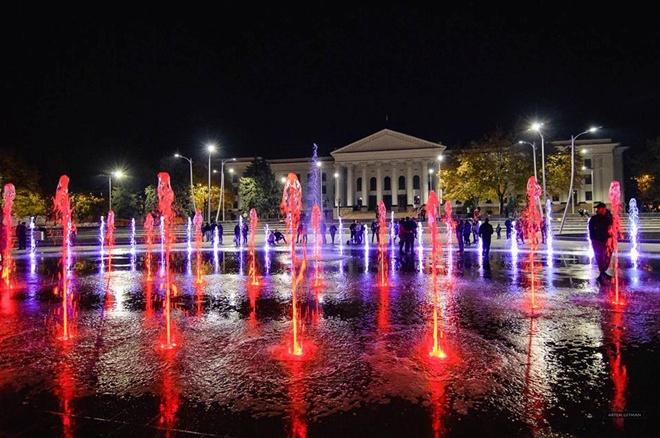 В городе Краматорске Донецкой области произведена масштабная реконструкция центральной площади Мира. Теперь там, где раньше стоял памятник Ленину, располагается пешеходный фонтан.