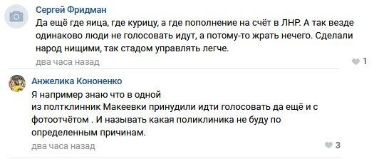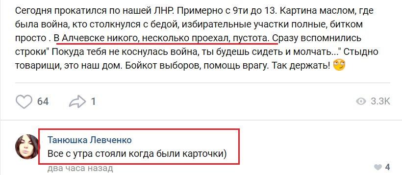 О том, как достигалась эта цифра, в соцстетях сообщают местные жители, передает Час Пик. Добпущенные в личных данных ошибки в "бюллетенях" члены комиссии исправляли на месте шариковой ручкой. Некоторых граждан регистрировали даже в возрате 10 месяцев. На многих участках "республик" "избирателей" зазывали продуктами и другими видами подкупа. Напомним, ранее Час Пик сообщал, что в "ЛНР" местный оператор связи "Лугаком" предоставит каждому проголосовавшему жителю "ЛНР" карту пополнения на 100 руб.