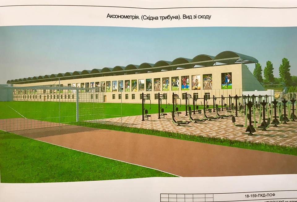 "На сегодняшний день мы получили проект капитального ремонта стадиона, который включает в себя капитальный ремонт трибун, хозяйственных сооружений, сооружение электронного табло, футбольного поля (натуральное травяное покрытие), площадка с дорожкой для прыжков, беговые дорожки, площадки с тренажерами, 3 площадки для мини-футбола (искусственное травяное покрытие), запасное футбольное поле (искусственное травяное покрытие), площадка для метания ядра, спортивный комплекс с 9 спортивными элементами, тротуары, дорожки и т.д.