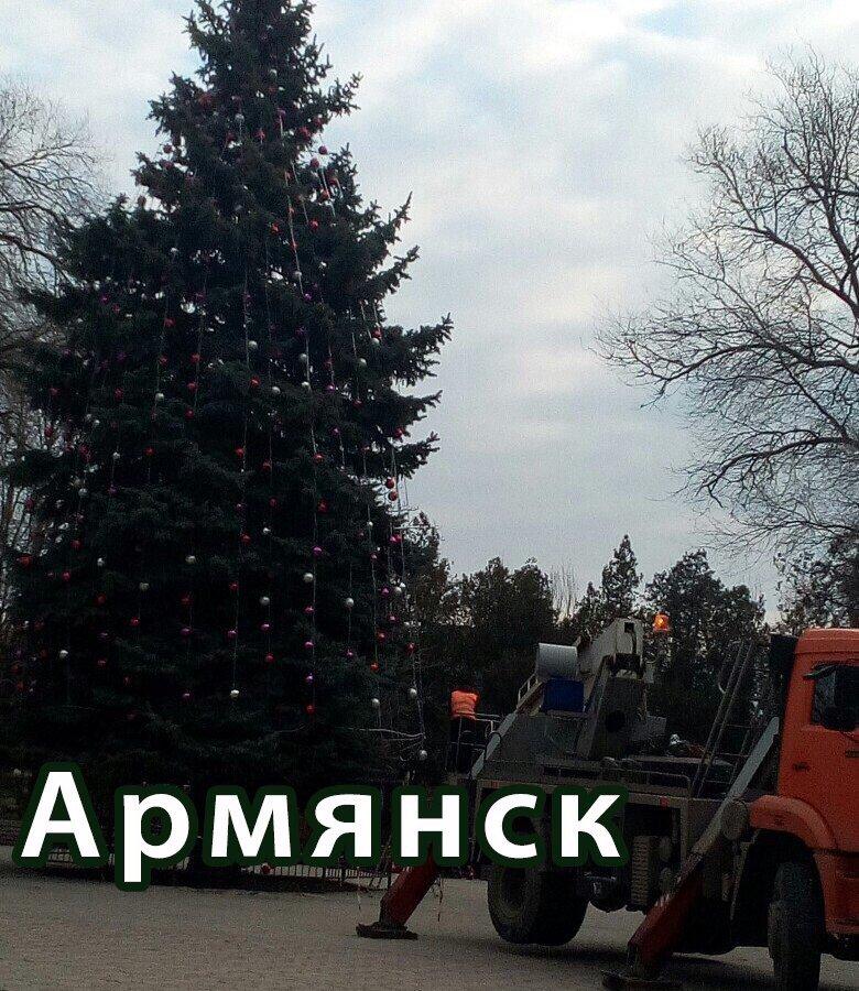 Несмотря на химическое загрязнение, готов к зимним праздникам северный Крым. Елки нарядили в Армянске и Красноперекопске: