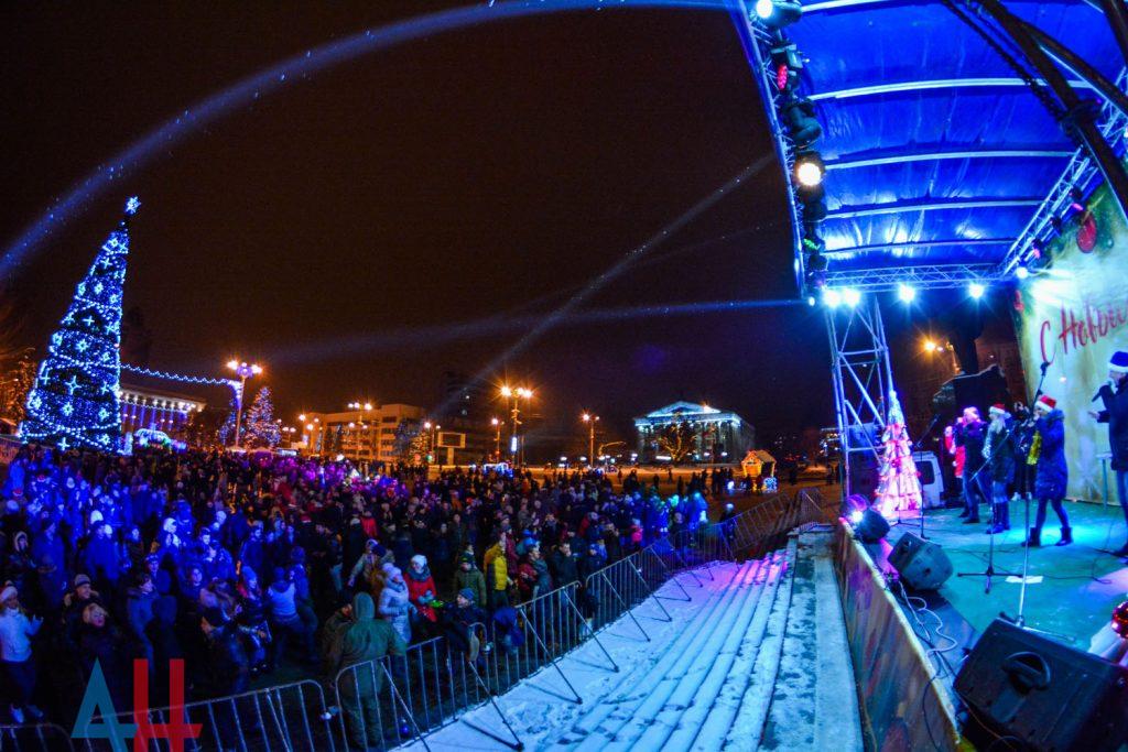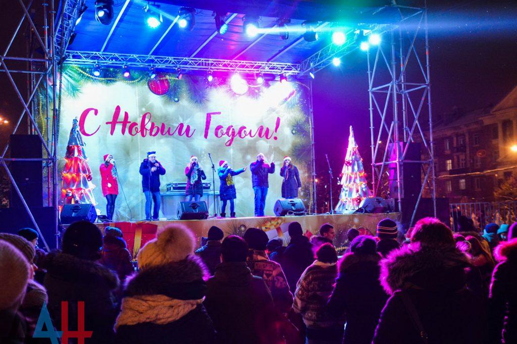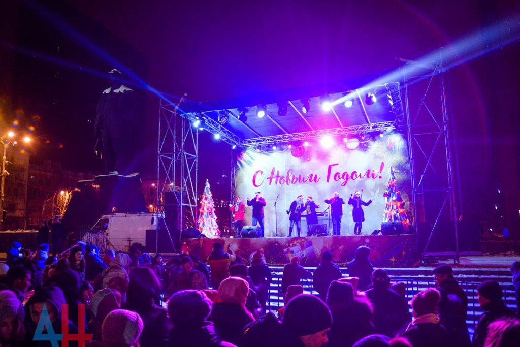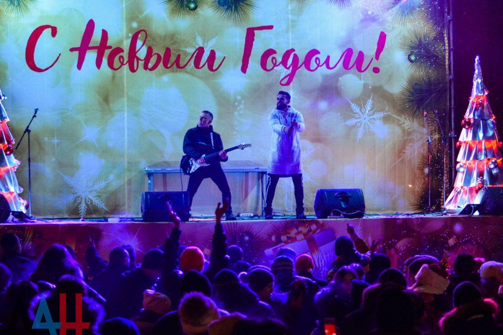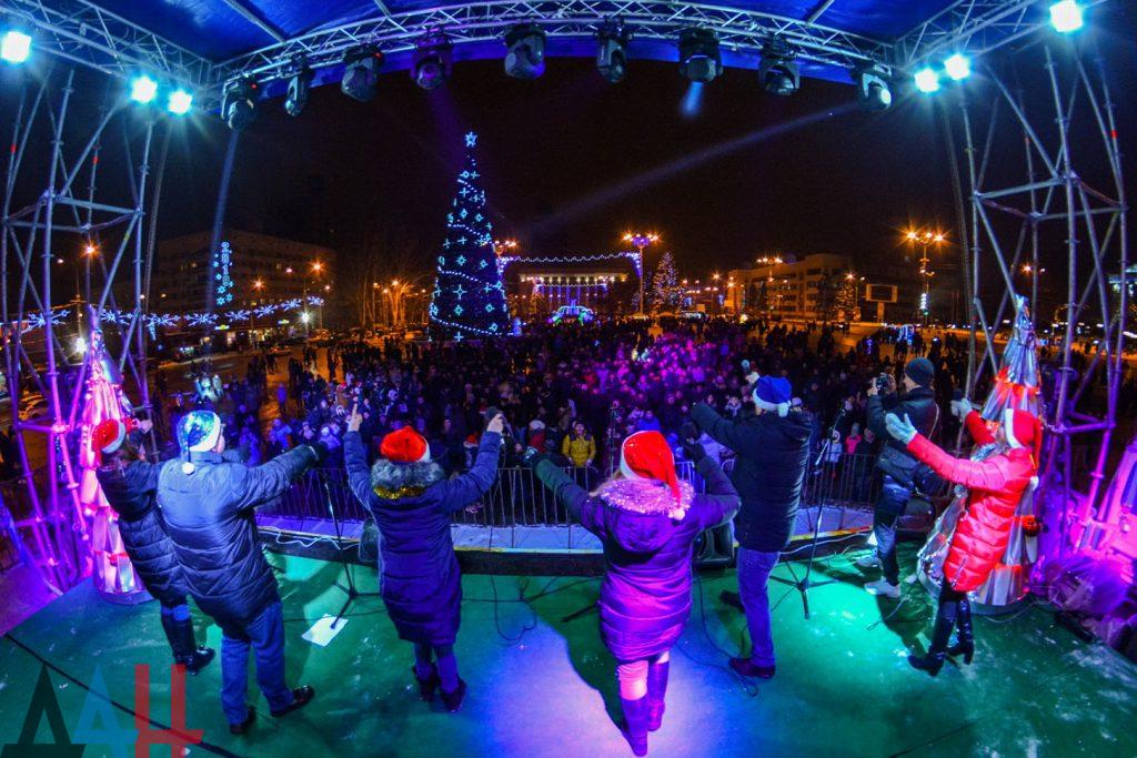 На сцене у главной елки "ДНР" выступали макеевский ансамбль "Ре-Ми" и донецкая молодежная группа "NINJA". Затем дончане имели возможность насладиться шоу ди-джеев и дискотекой с играми, викторинами, танцами под открытым небом под советские и российские песни и хороводом вокруг елки.