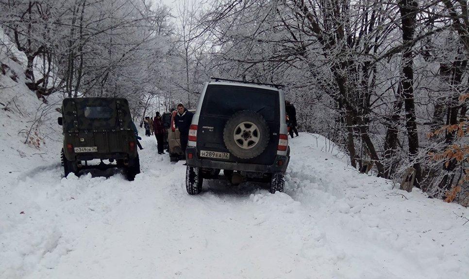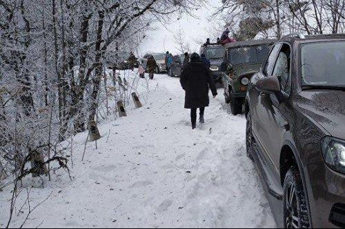 В Крыму на заснеженную гору Ай-Петри продолжают ехать желающие полюбоваться местными красотами - и застревают в снегу.