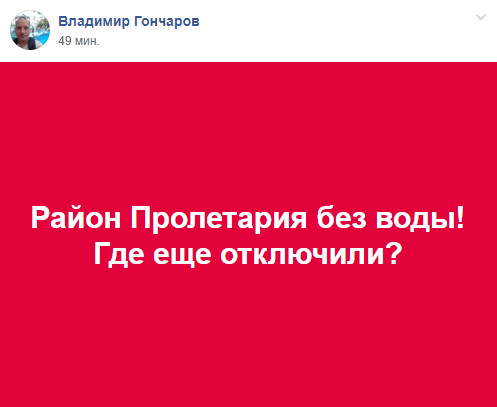 Чаще всего вода пропадает в кранах жителей района РТИ, но на этот раз проблема коснулась Пролетарска и некоротых центральных микрорайонов. В местном сообществе в Фейсбуке лисичане пишут, что вода с утра отсутствует в Пролетарске, на повороте Мельникова, в центре нет воды возле центрального рынка, "Сильпо", "Джамили", в районе "подземгаза".